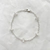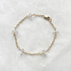 3x6mm clear crystal quartz stones dot a 2.1mm wide cable chain to make up this minimalist handmade bracelet. Available with 14k gold fill or sterling silver chain.