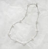 3x6mm clear crystal quartz stones dot a 2.1mm wide cable chain to make up this minimalist handmade necklace. Available with 14k gold fill or sterling silver chain.