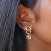 These earrings have been lovingly hand carved in wax, then cast in metal using the lost wax casting process. Available in brass (with 14k gold fill posts and backs), sterling silver, gold vermeil (14k heavy gold plate over sterling silver), or 10k gold - please inquire for other metal types. A 10mm round clear crystal quartz stone hangs below.Â